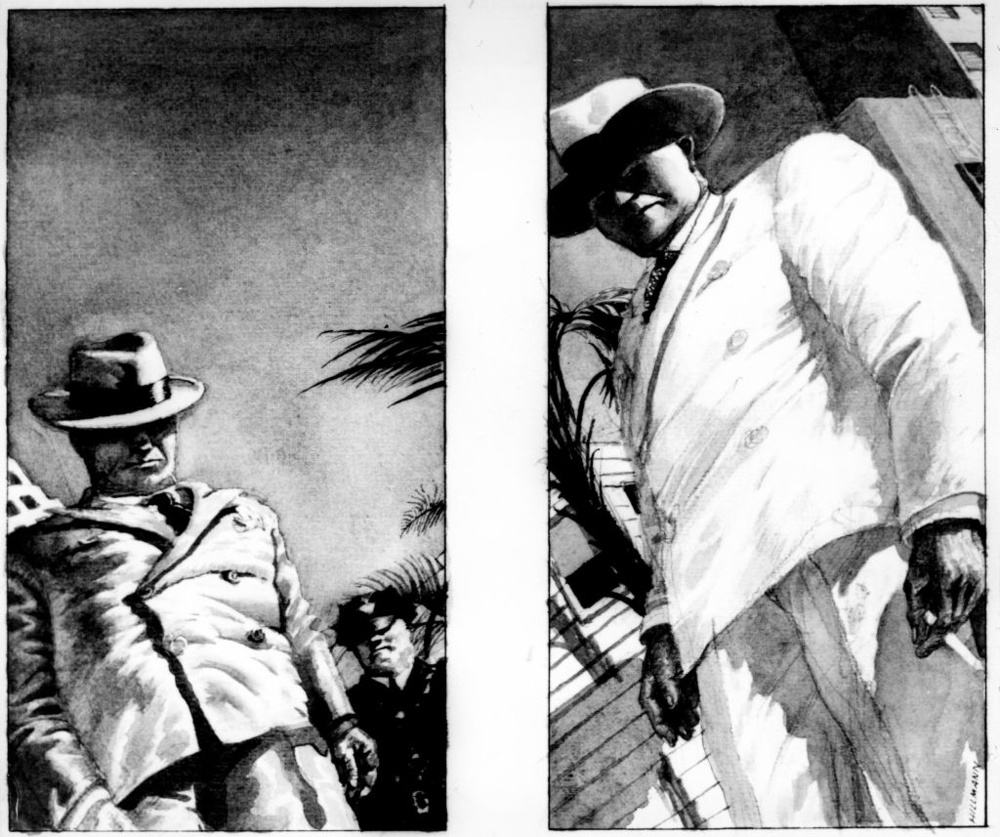 Vertont wird die Graphic Novel „Fliegenpapier“ von Hans Hillmann, die der Künstler – in Anlehnung an den gleichnamigen Krimi von Dashiell Hammett (1894-1961) – zwischen 1975 und 1982 in großformatigen Aquarellen schuf. Das wegweisende Werk nahm die Entwicklung der Graphic Novel – ein Begriff, der erst später geprägt wurde – vorweg. Die Handlung beginnt mit der Suche nach einer Tochter aus gutem Hause, die sich mit Gangstern eingelassen hat, und entwickelt sich schnell zu einem Mordfall. In der Vorführung verschmelzen drei Ebenen zu einem außergewöhnlichen Erlebnis: die projizierten Bilder aus der Graphic Novel, der vorgetragene Text und die Vertonung der Geschichte fügen sich zu einem neuen Ganzen.