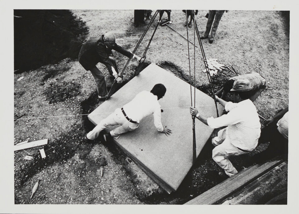 Installationsarbeiten von "Der vertikale Erdkilometer" von Walter De Maria, documenta 6 (1977)