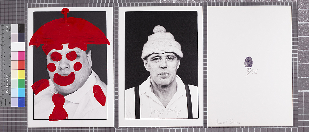 Here the portraits of Ford Beckman (with painted addition of the artist) and Joseph Beuys as well as Mebusch's "thumb signature" on the back. (Photo/composite: Karoline Achilles)